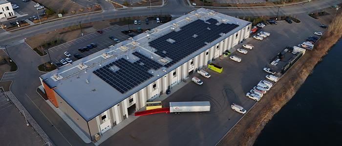 At N170 Henday Business Park in northwest Edmonton, the 48,000 square foot office and warehouse flex building is now generating renewable energy on site through rooftop solar power. The system includes 408 panels and produces 185 kWac, helping reduce reliance on grid power during daylight hours.