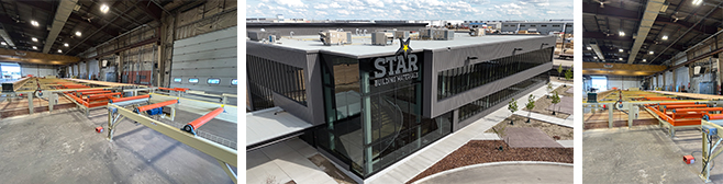 At the Star Building Materials facility in Calgary, computer-guided manufacturing for wall panels, trusses, and floor systems helps teams hit the mark, cut after cut.